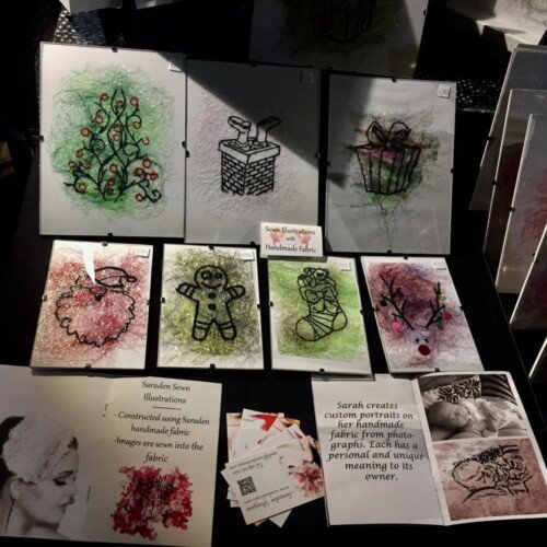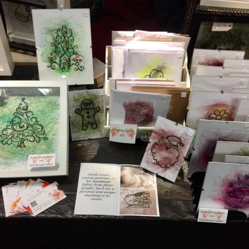 I will be taking Christmas orders for my sewn illustrations, custom portraits and custom sewn illustrations on the day. You can talk to me about design ideas you have on the day or contact me sarah@saradendesigns.com/087 777 5175.