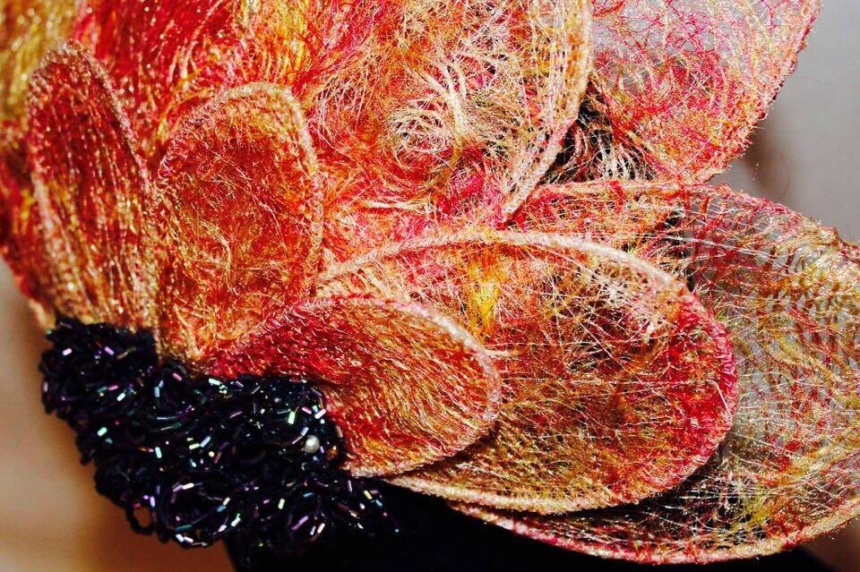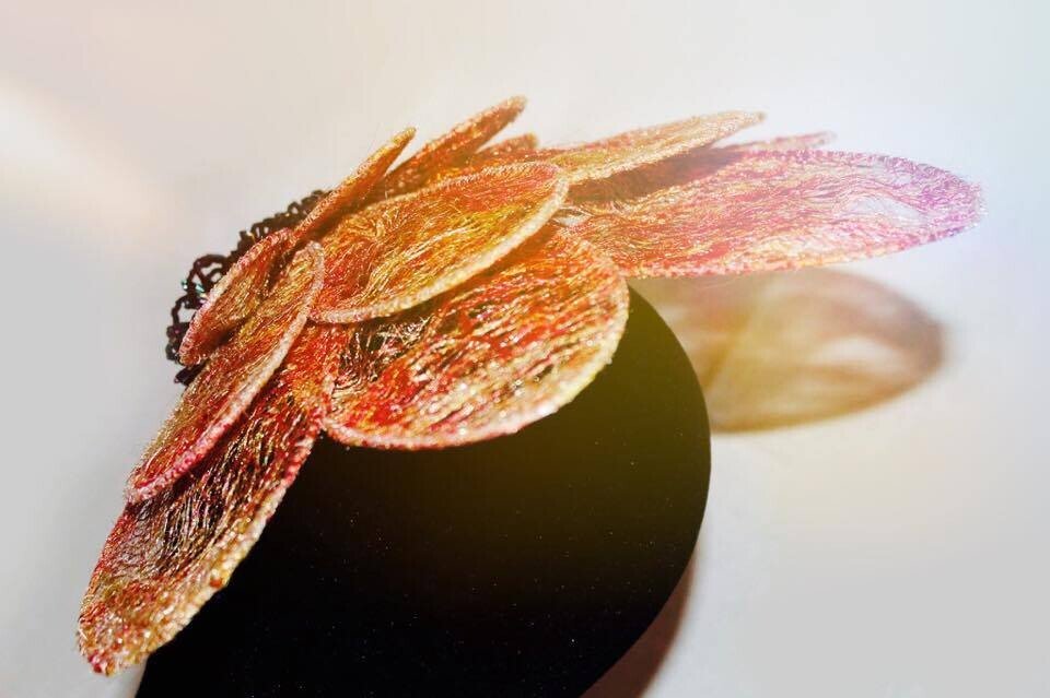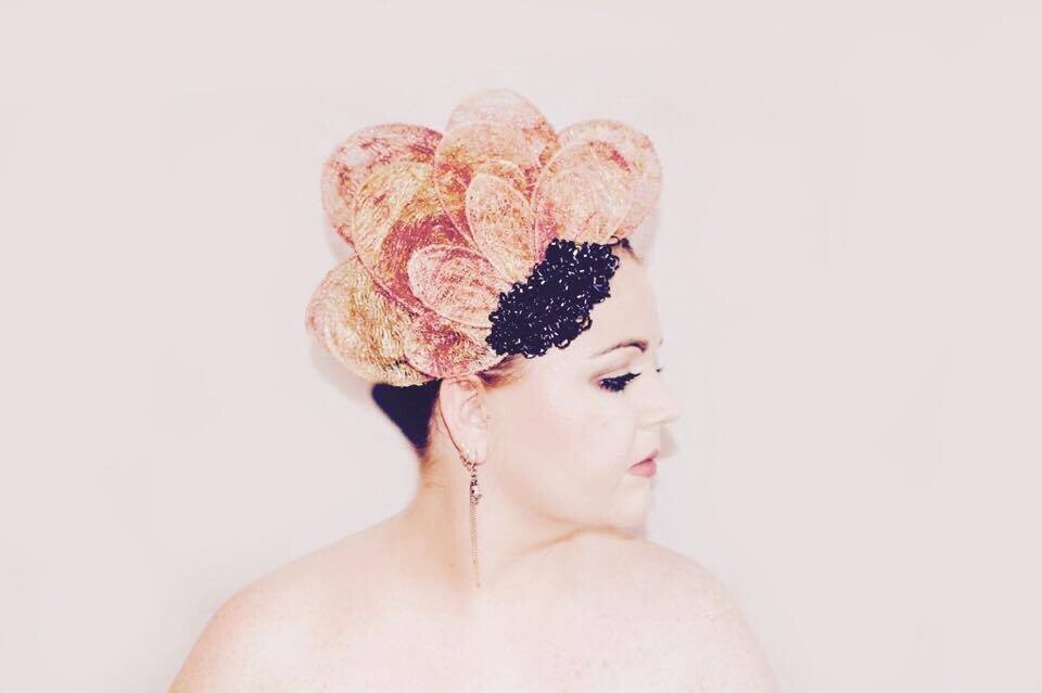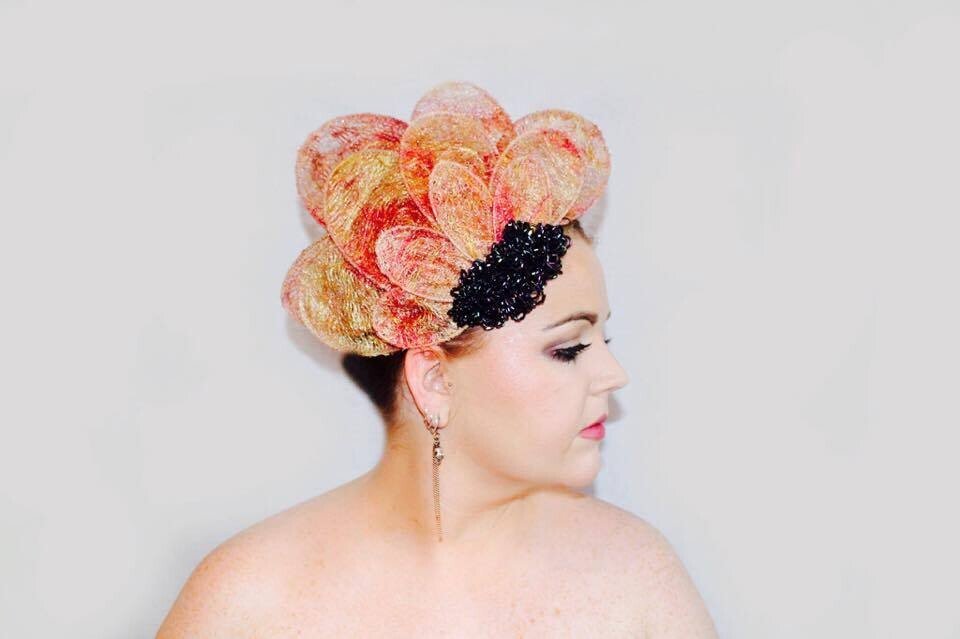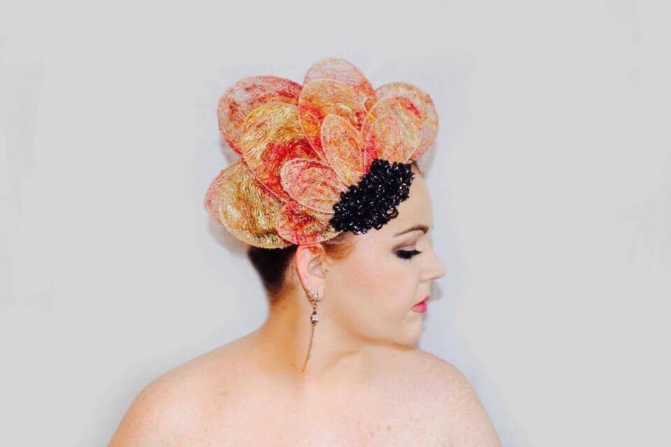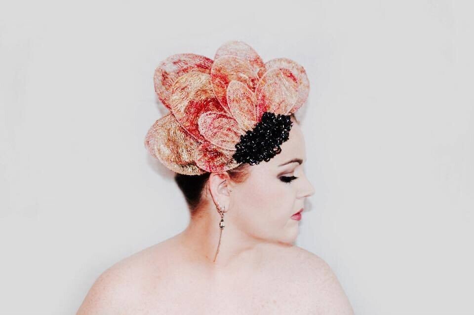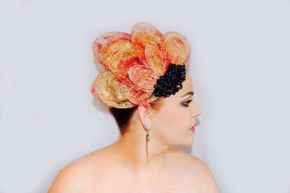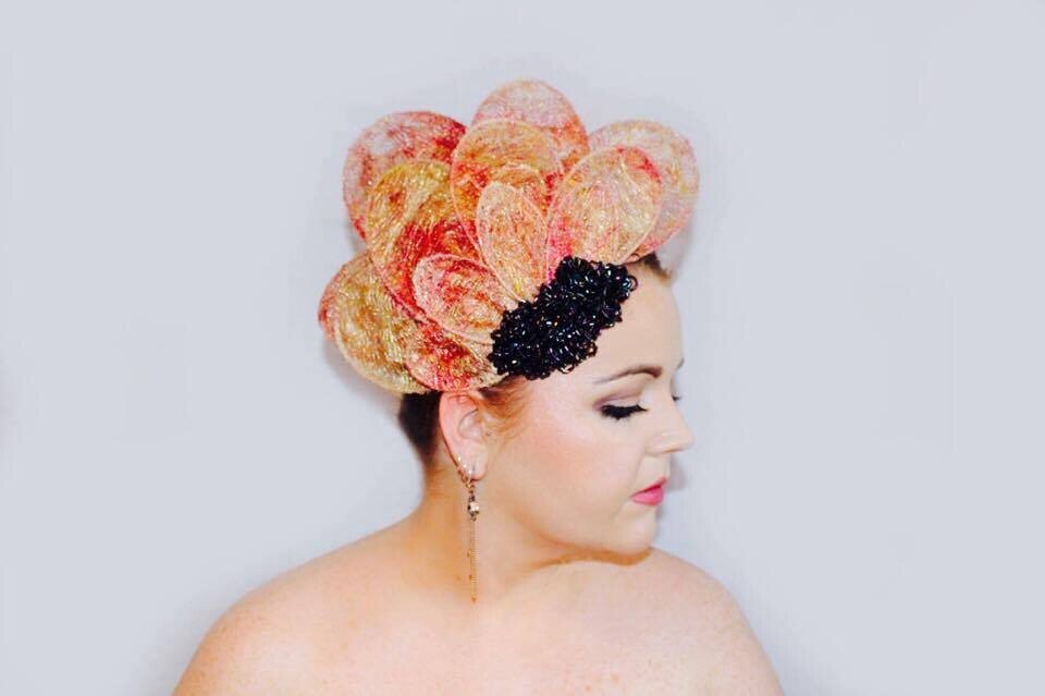Hours were spent adding each bead to this design by hand. The purple tones add a whole other element to this design and make the detailing really pop. Blackberry is secured to the head with a comb and elastic and is completed with a Saraden Designs unique wood label. If you like to stand out from the crowd this is definitely the piece for you!