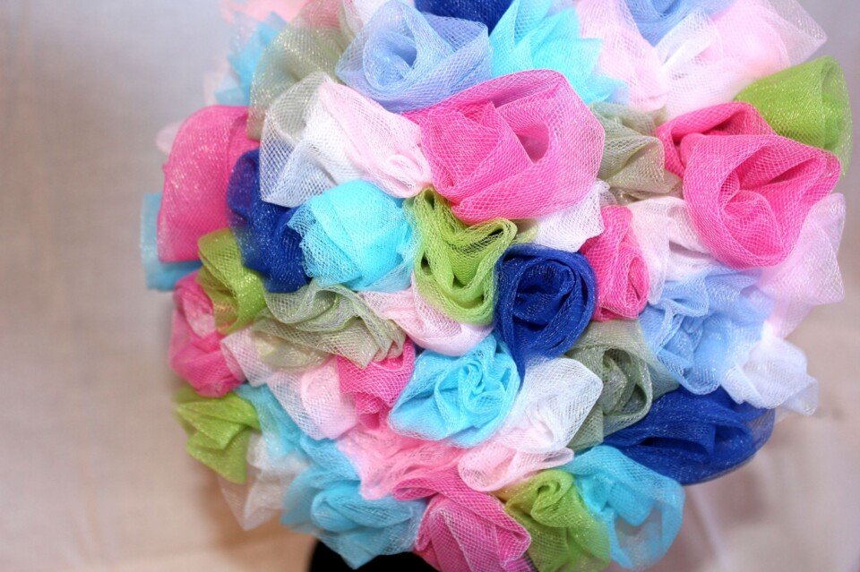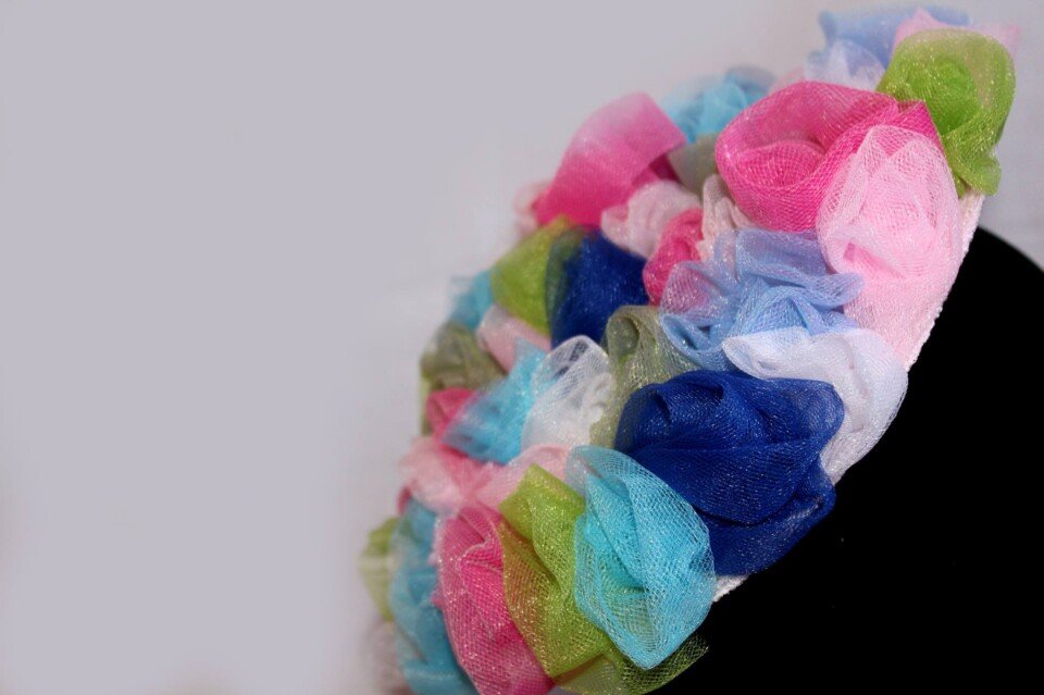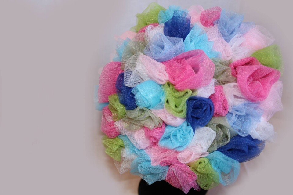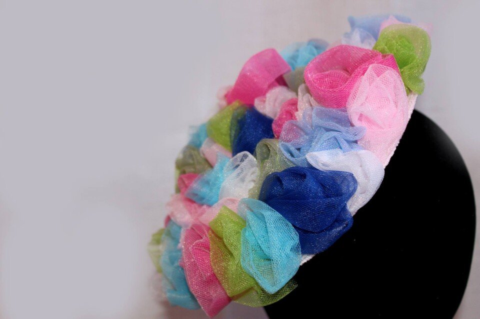 ‘Bouquet’ is a beautiful piece which has been designed using small roses sculpted by hand with fabric. There is an array of colours from blues and pinks shades to greens and white.