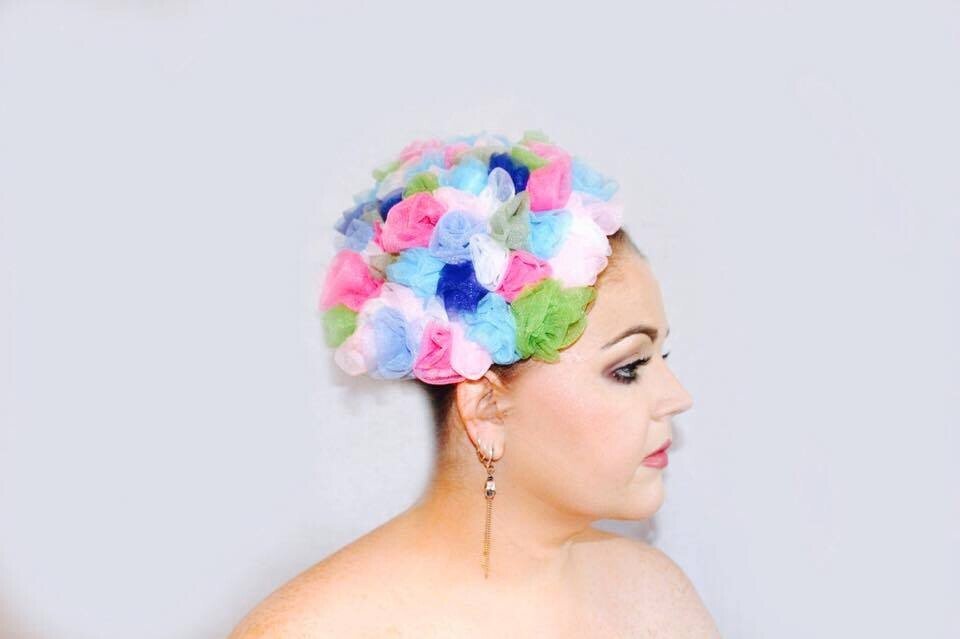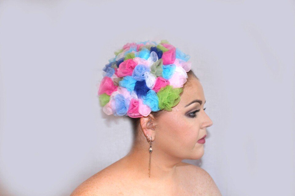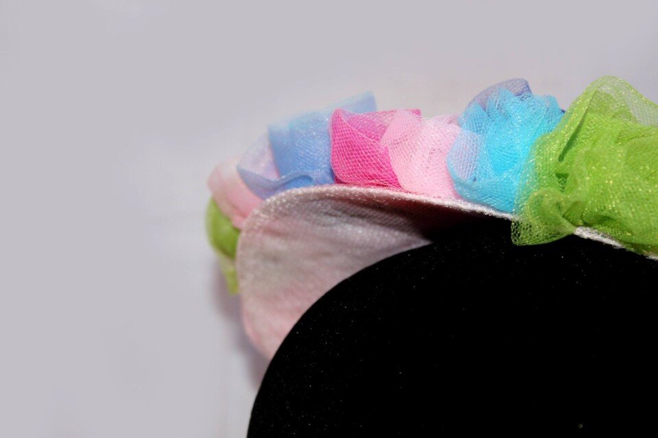 It is finished with a hairband to secure the piece to your head.