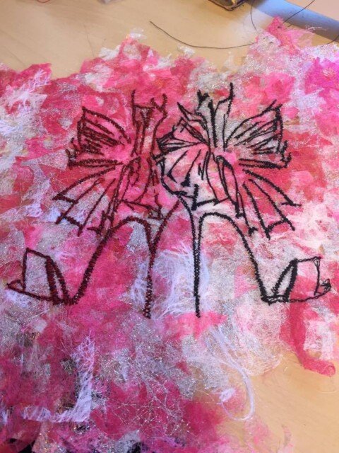 I first draw out the designs and then sew them into my handmade fabric. All the fabric is unique and can never be replicated for a second time so each piece is on of a kind. I have to frame all the designs still but here is a sneak peak at a few of them.