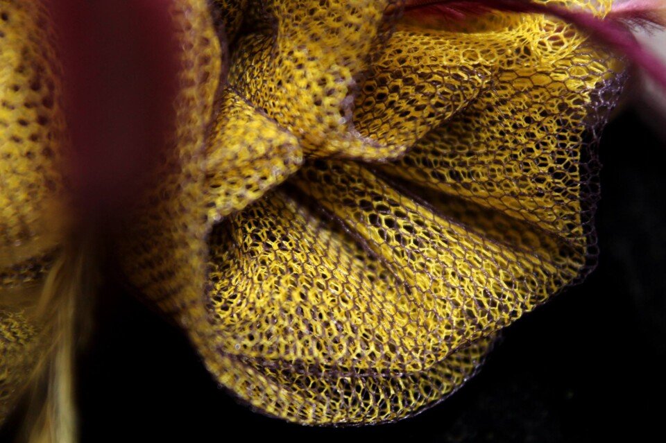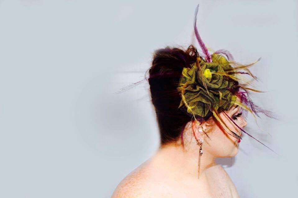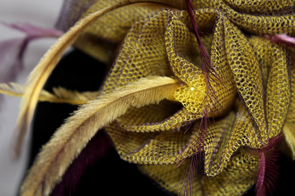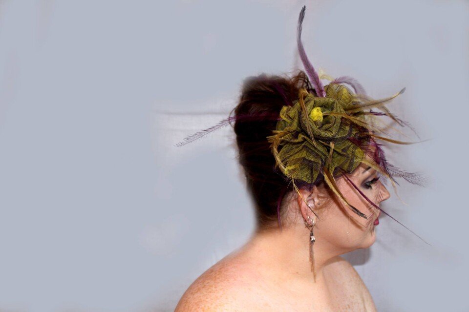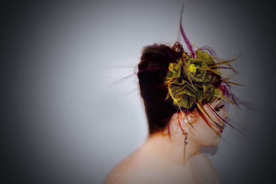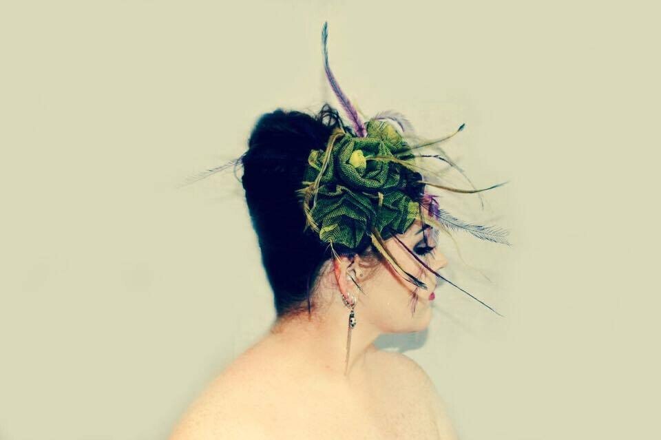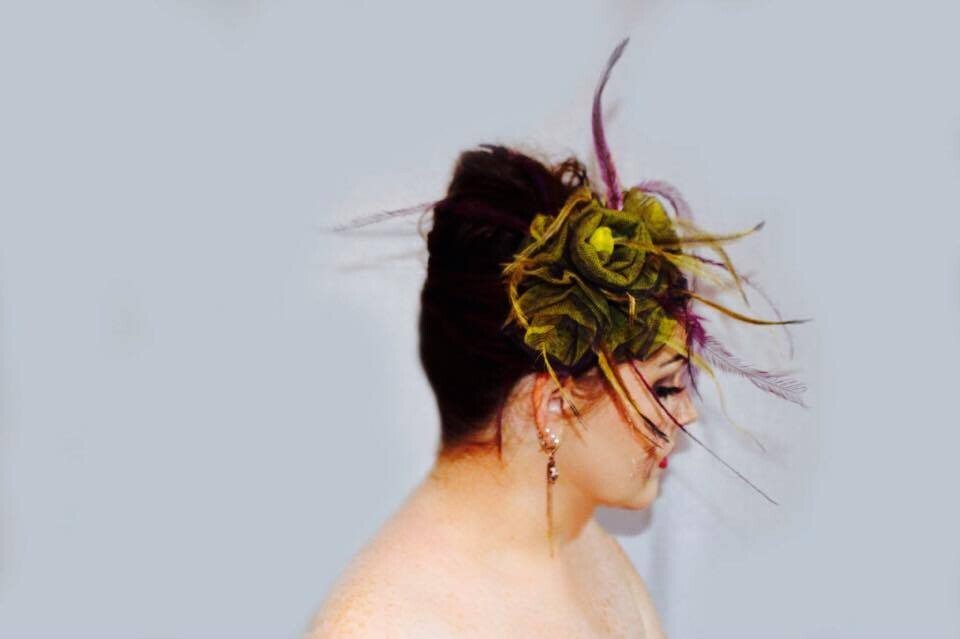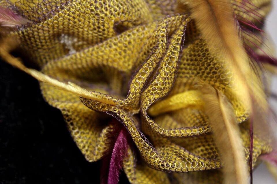 ‘Delilah’ is a gorgeous floral piece created by Saraden Designs. Each floral element has been sculpted by hand and then secured into its shape through hand sewing.
