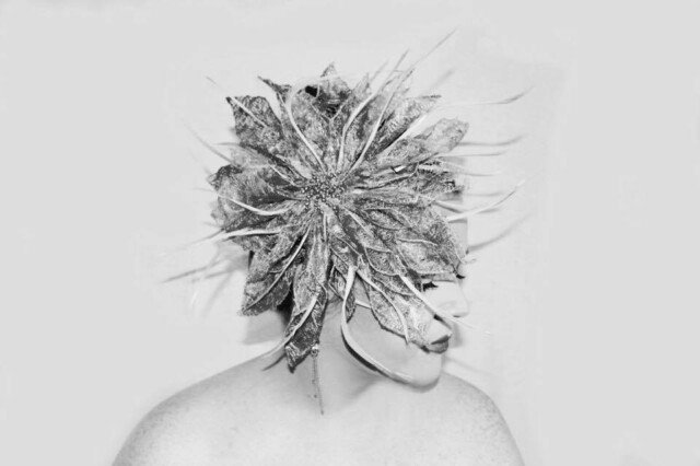 The shape reminded me of the Anise spice you use in cooking hence the name Anise. The design has been finished by placing complimenting peach feathers in between each layer. I then used bronze beads to created a subtle focus point in the middle of the piece in the same shape as the hat.