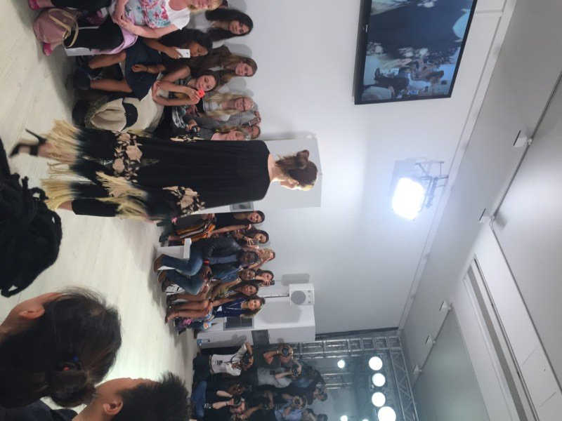 After our browsing and champagne drinking we entered the room where the show would be happening and to our right we had the lovely press and much to our delight we go second row seats.