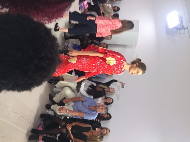 We arrived at the Saatchi Gallery and collected our tickets and we received a unique designer tote filled with a few little treats and of course when in Rome, we headed straight to the champagne bar because after all it is very hard work looking at fashion.