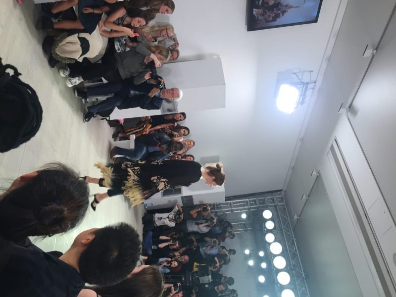 After our browsing and champagne drinking we entered the room where the show would be happening and to our right we had the lovely press and much to our delight we go second row seats.