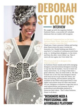 The magazine also covers Fashions Finest during London Fashion Week Which Saraden Designs was also apart of as a one piece exhibition.