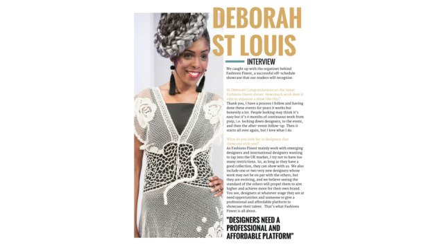 The magazine also covers Fashions Finest during London Fashion Week Which Saraden Designs was also apart of as a one piece exhibition.