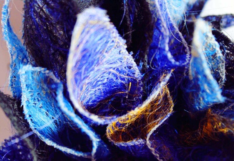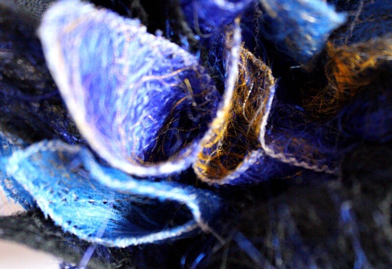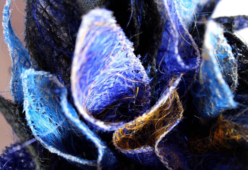 Midnight is a one of a kind piece which has been designed using Saraden Designs Handmade Fabric. This fabric has been created by hand using various techniques and fibers by Sarah. Each individual element has been stenciled onto the fabric then cut out. Sarah has then sculpted each piece into this design and hand sewn into place.