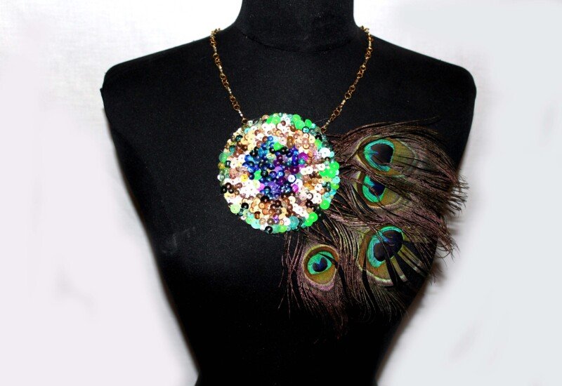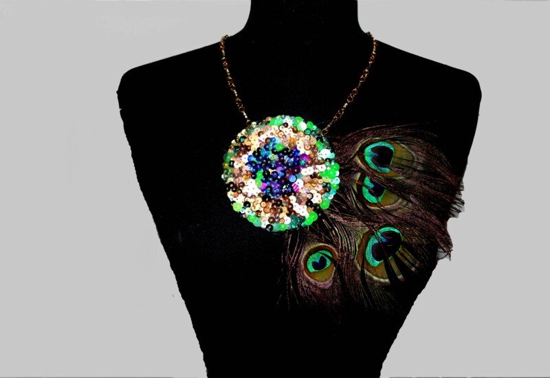 Peacock is a one of a kind Necklace has been designed by Saraden Designs. The theme behind this design was peacock feathers which is where the center design has come from.